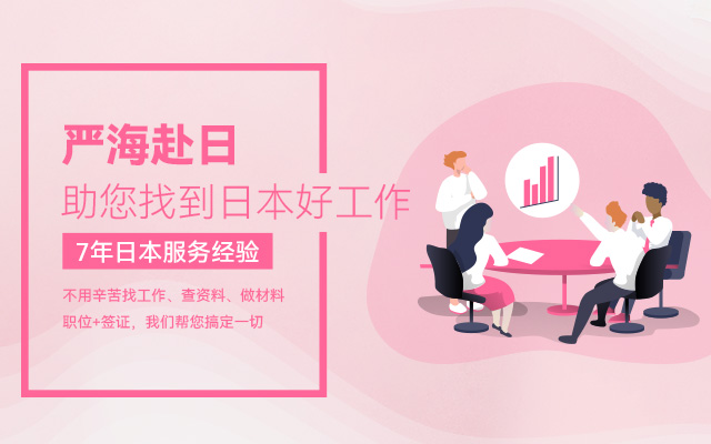嚴(yán)海赴日(workinjapan.cn)是專業(yè)的赴日工作服務(wù)平臺(tái),是大連嚴(yán)海人力資源有限公司旗下品牌。主要提供日本就職(工作簽)/日本留學(xué)(半工半讀),等最新工作信息和資訊,為想赴日工作的小伙伴們提供專業(yè)的、一對(duì)一的咨詢,為您職業(yè)生涯規(guī)劃、永居辦理、在日期間換職、轉(zhuǎn)換簽證等方面提供支援。